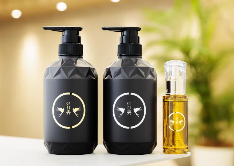 自社ブランド「en美(エンビ)」は、髪の本質的な美しさを追求したプレミアムヘアケアシリーズです。シャンプー・トリートメント・オイルの3ステップで補修・保湿・保護を叶え、自宅でありながらサロン品質の仕上がりを実現。毎日のケアを、髪と心を磨く特別な体験へと変えていきます。